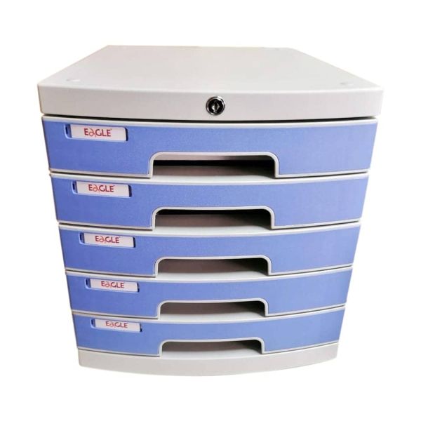 كابينة ادراج ايجل بلاستيك5درج بمفتاح أزرق -رمادى رقم 15002