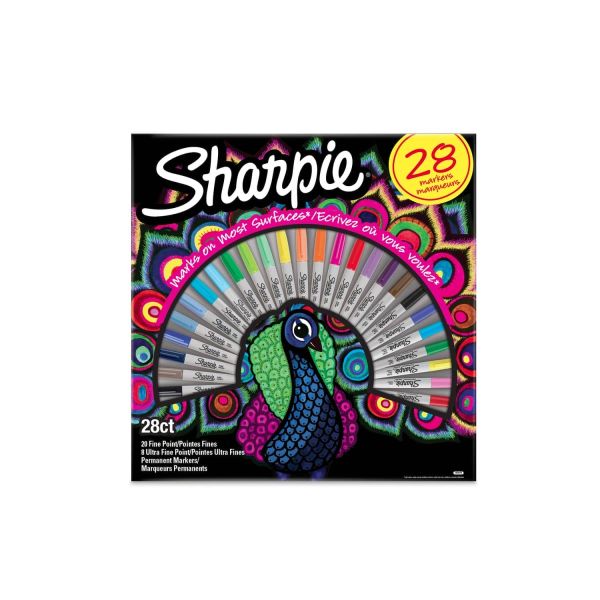 Go wild with this exclusive set of 28 assorted colour permanent markers 20 fine-point and 8 ultra-fine markers, so you can switch between bold strokes and intricate details Intensely brilliant colours create vibrant, eye-catching impressions Proudly Permanent ink marks on paper, plastic, metal, and most other surfaces Remarkably resilient ink dries quickly and resists fading and water