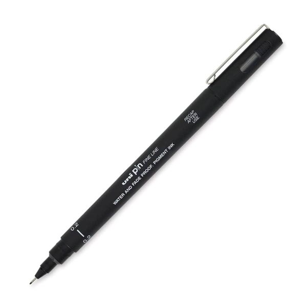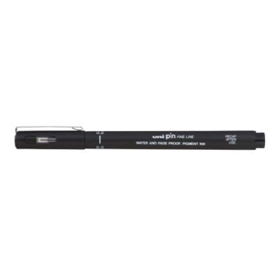 A fade-proof and water resistant pigment ink fine line pen, the uni-ball PIN is often the first choice for artists and designers. The PIN’s wide choice of nib sizes allows you to create crisp, clear lines and perfect techniques such as stippling, cross-hatching and shading.Drawing pen, loved by architects, artists and graphic designers Solid, pigment ink line can easily be used with watercolour as the ink will not smudge when wet Wide range of nib sizes available, Nib is supported and protected by steel Containsfade-free, water-resistant uni Super Ink